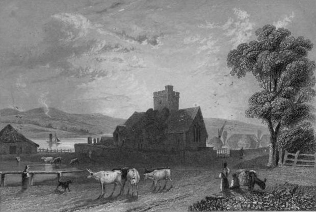 Leaving Snodland, situated on the opposite bank, the glassy bosom of the stream soon reflects the ruined walls of Hailing-House, which, in the reign of Henry II, was one of the four stately palaces of the bishops of Rochester, who, in all probability, resided here before the conquest. The river, which is here expanded into a considerable breadth, with increased current passes the ancient, but picturesque, village of Woldham, and, winding in difierent curves, reaches the village of Cuxton, formerly called Coclestane, on the left, and we soon obtain an imposing view of the majestic ruins of Rochester castle, its ancient Gothic bridge and venerable cathedral. [81]