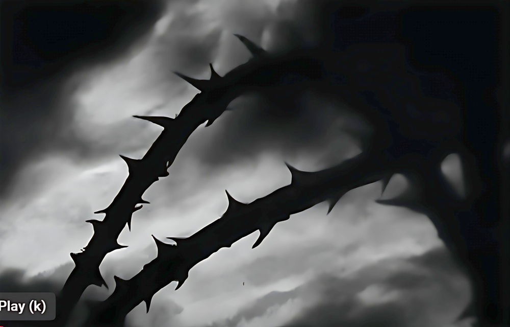 Two shots concerning Oliver’s mother, played by Josephine Stuart, as she struggles through the storm: Left: borne down by wind and rain: Right: the emblematic bramble that suggests her agony, outlined as an abstract form against a tumultuous sky.