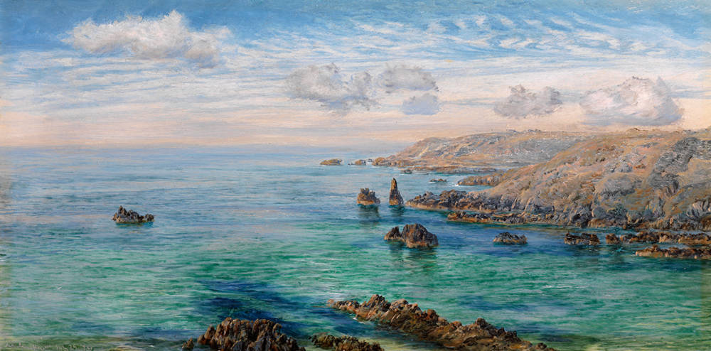 Sketch on the South Coast of Guernsey by John Brett (1831-1902). Signed and dated “July 25 '74.” Oil on board, 6¼ x 13¼ inches. Cuortesy the Maas Gallery, London. Click on image to enlarge it.
