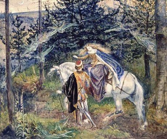 La Belle Dame Sans Merci. 1865. Watercolour on paper. 17 1/2 x 21 5/8 inches (44.5 x 55 cm). Private collection. Courtesy of Peter and Renate Nahum.