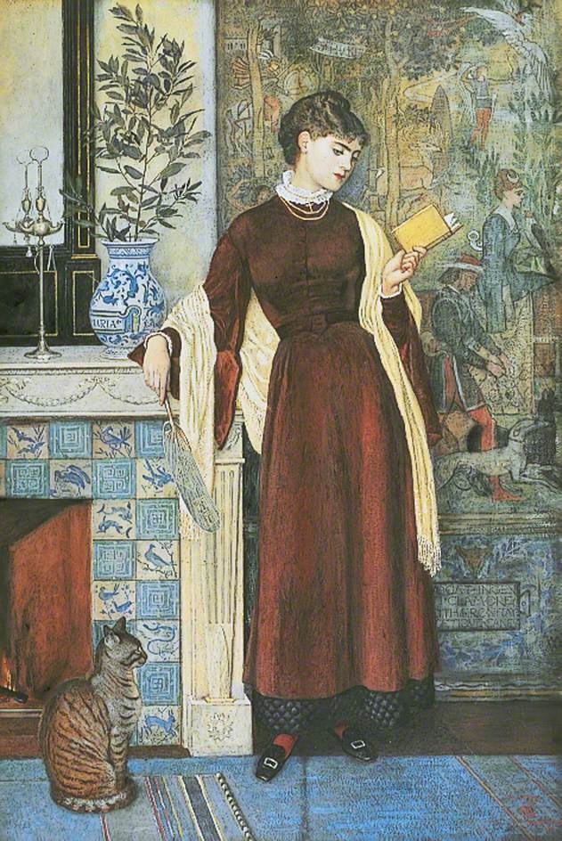 At Home, A Portrait. 1872. Tempera on Wood. 28 x 16 inches (71.1 x 40.6 cm). Collection of Leeds Art Gallery, Leeds Museums and Galleries, Leeds. Reproduced via Art UK for purposes of non-commercial academic research. [Click on the image to enlarge it.]