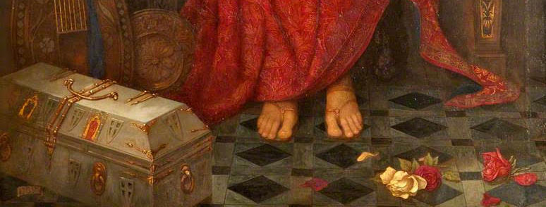 The painting was commissioned by George Holt in 1893. When it was completed in July 1894 Holt complained it was too dark. He therefore returned the painting to Strudwick in March 1895 who then altered the dress and face of the maiden and made the painting lighter in tone. (Morris 443). In a letter of July 16, 1894 Strudwick described the meaning of the painting to Holt: