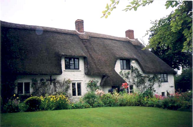 Cottage in Marnhull village, Dorset — supposedly the model for Tess Durbeyfield's thatched cottage at Marlott. Photograph and text (2002) by Philip V. Allingham. [You may use this image without prior permission for any scholarly or educational purpose as long as you (1) credit the person who scanned the image and (2) link your document to this URL.]