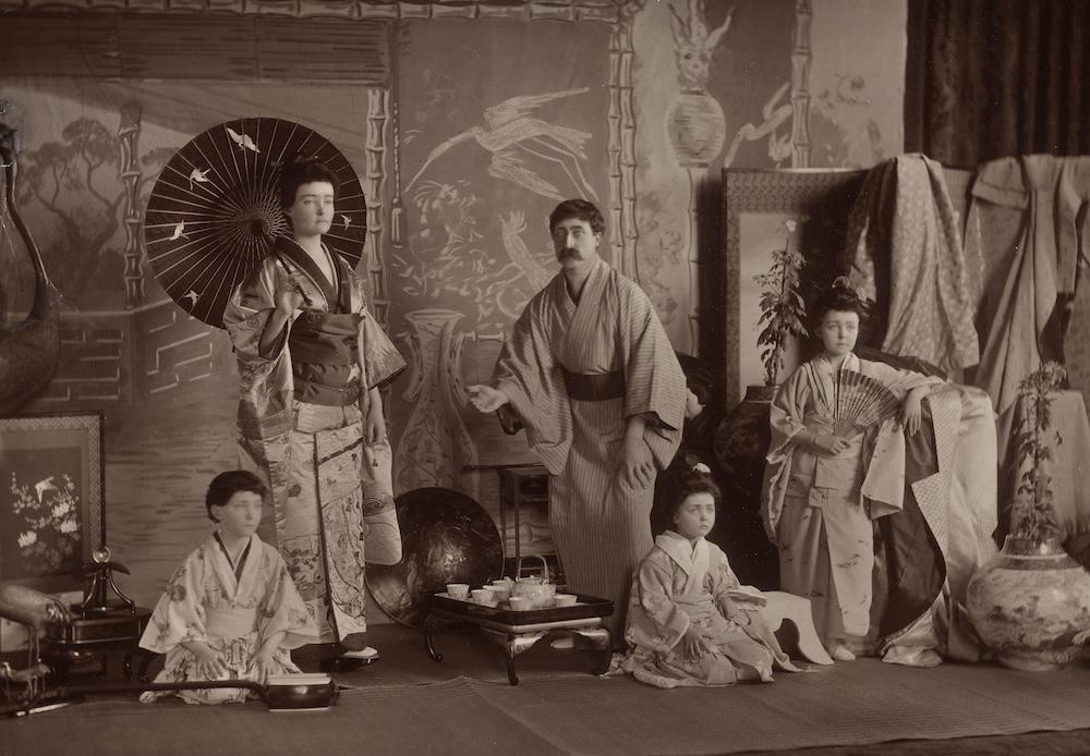 This "Japanese Scene" shows the Queen's third son, Prince Arthur, the Duke of Connaught, with his family in one of seven tableaux vivants performed for the Queen at Osborne on 8 January 1891. Carbon print, 16 x 22.8 cm (whole object), RCIN 2810107 © Royal Collection Enterprises Limited 2026 | Royal Collection Trust, by kind permission.