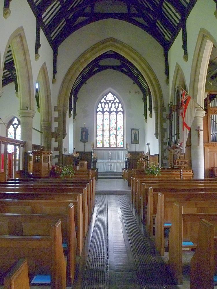 Left: St Margaret of Antioch Church, Hawes, Wensleydale, by A. B. Higham of Wakefield, 1851. Right: Interior of St Margaret's.