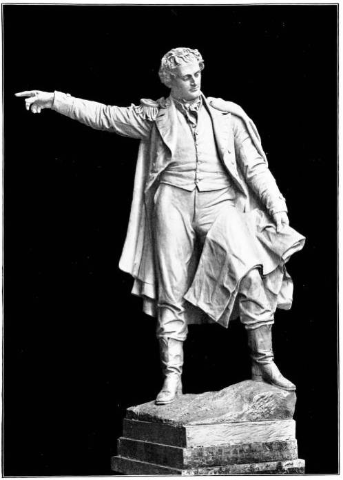 Other important works, of which a bare mention must suffice, are the four large bronze figures of Astronomy, Chemistry, Rhetoric, and Medicine, wrought for the Albert Memorial's eastern side, standing two against the granite columns and two in the niches above; the designs illustrative of Applied Mechanics (executed in mosaic, and forming part of the frieze of the Albert Hall), representing the Lever, the Wedge, and the Screw, with figures of Archimedes ancl Watt and, lastly, a life-size rilievo, far advanced in clay, of Hero mourning over Leander, a singularly original composition, in which the awkward horizontal lines of the dead lover's body are reconciled by the extended plumes of a staring stony-eyed eagle, a regardful but inexorable Jove!