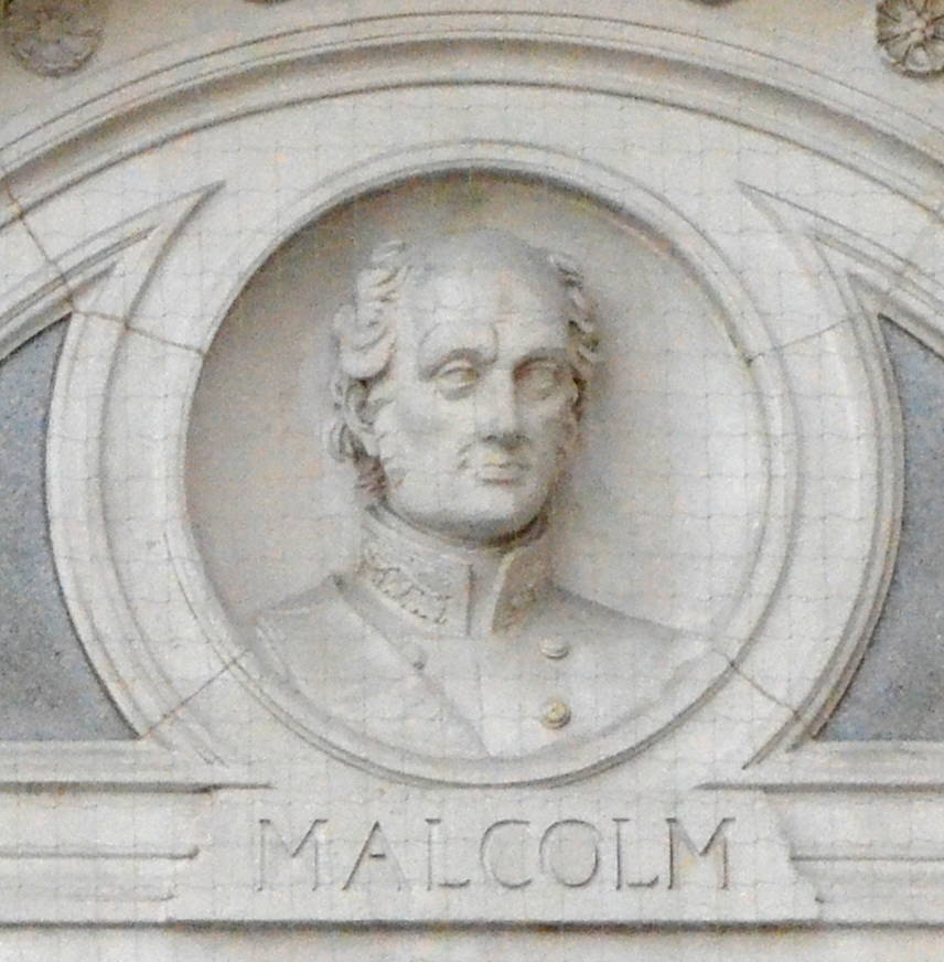 Malcolm by Henry Hugh Armstead or J. Birnie Philip[?]. Colonial Office, Whitehall, London. [Click on image to enlarge it.]